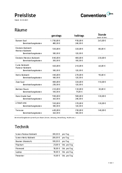 Preisliste Conventions pdf (74,82 KB)Preisübersicht: Veranstaltungsräume und Technikpdf (74,82 KB)